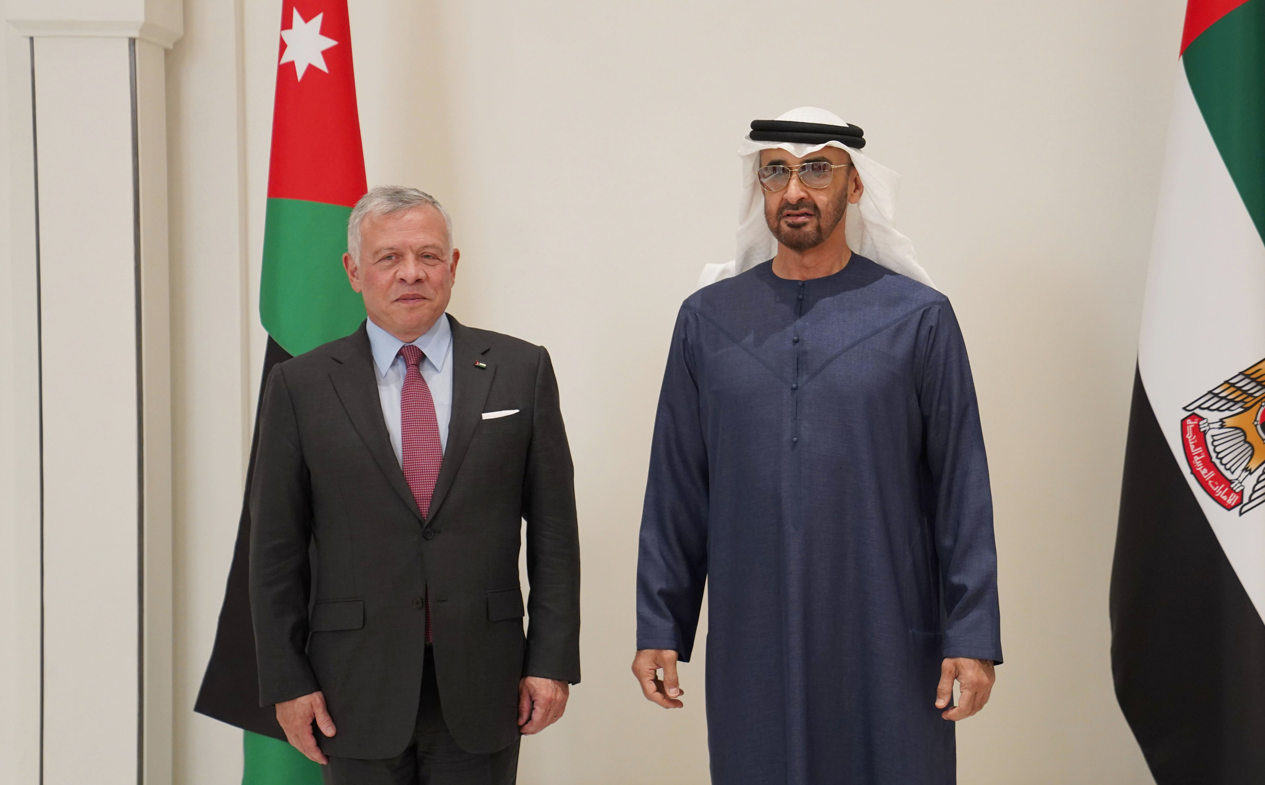 وحضر اللقاء رئيس الوزراء الدكتور بشر الخصاونة، ونائب رئيس الوزراء ووزير الخارجية وشؤون المغتربين أيمن الصفدي، ومدير مكتب جلالة الملك، الدكتور جعفر حسان، والسفير الأردني في أبوظبي نصار الحباشنة.