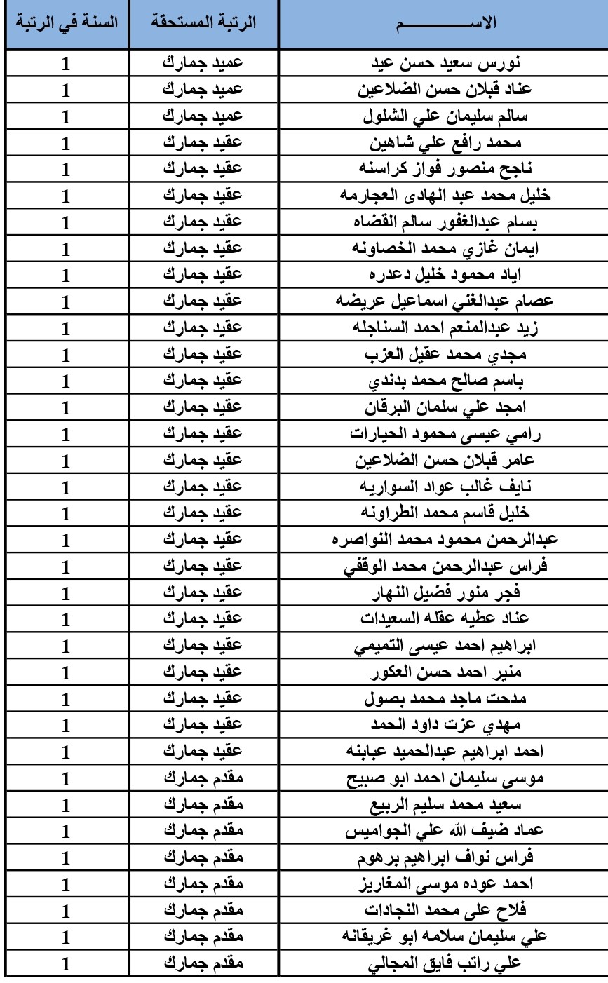 تقرر ترفيع عدد من ضباط وأفراد دائرة الجمارك العامة للرتب التي تلي رتبهم.