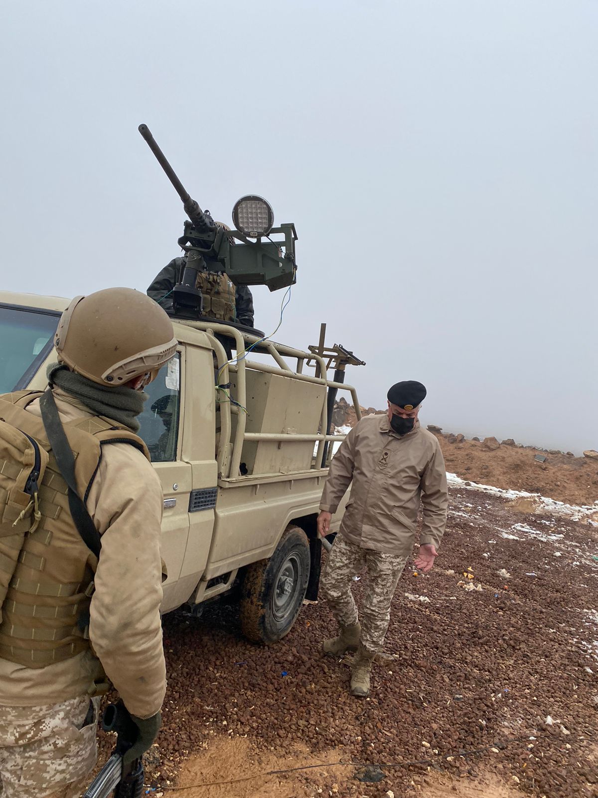 جاء ذلك خلال زيارة رئيس هيئة الأركان المشتركة اليوم الجمعة، إلى كتيبة الأمير طلال الآلية/5، إحدى وحدات المنطقة العسكرية الشرقية واستمع إلى إيجاز قدمه قائد المنطقة العميد الركن نِجي المناصير حول مجريات العملية التي وقعت على عدة واجهات في المنطقة فجر أمس والتي أسفرت عن مقتل مجموعة من المهربين وضبط كميات كبيرة من المواد المخدرة.