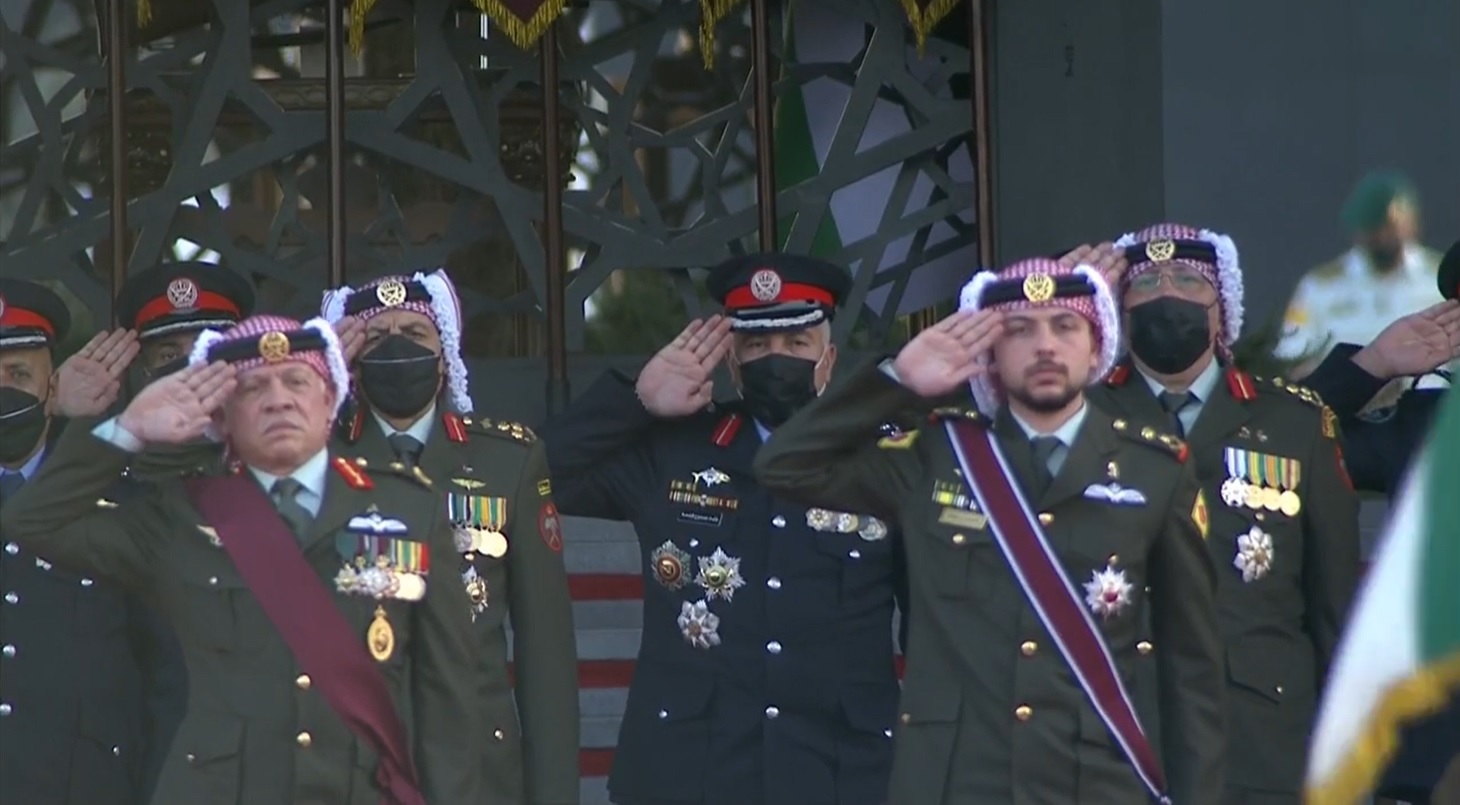 وعزفت موسيقات الجيش السلام الملكي، واستعرض جلالته حرس الشرف.