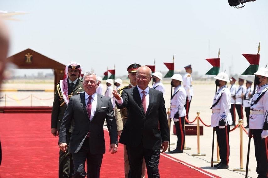 وكان في استقبال جلالته لدى وصوله مطار بغداد الدولي الرئيس العراقي برهم صالح، وعدد من كبار المسؤولين العراقيين والسفير الأردني في بغداد وأركان السفارة.