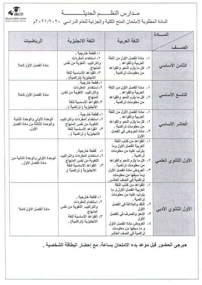 صراحة نيوز – أعلنت إدارة مدارس النظم الحديثة عن المنح الدراسية للعام ٢٠٢٠ – ٢٠٢١ على النحو التالي: –