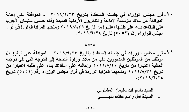 صراحة نيوز – صدر في الجريد الرسمية عدد اليوم الثلاثاء احالة عدد من موظفي الوزارات والدوائر الحكومية على التقاعد