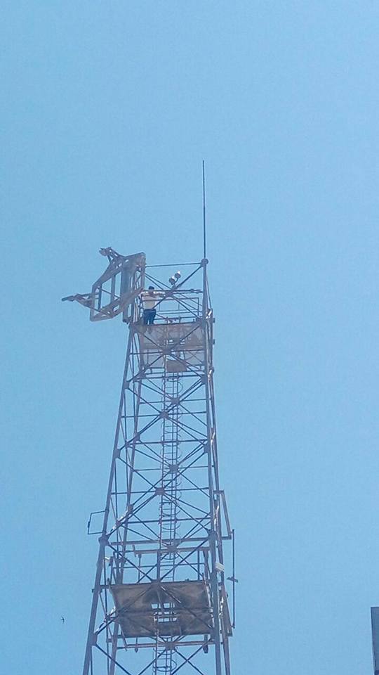 تحاول الأجهزة الأمنية ثني احد المواطنين عن محاولة الانتحار والذي اعتلى برج الاتصالات في شارع بغداد .