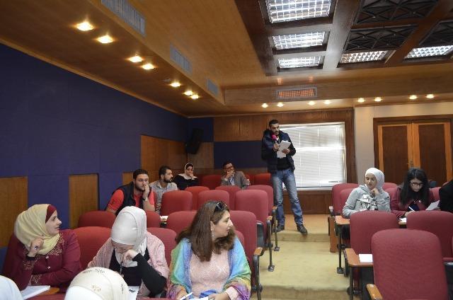 ثم تم تقسيم المشاركين الى مجموعات عمل لصياغة “خبر صحفي عن موضوع ما ” ليتم بعدها تقديم كل مجموعة للخبر الذي تمت صياغته من قبل اعضائها ومناقشته وتبيان جوانب الإجادة اوالخلل او النقص فيه من قبل المشرفين والمشاركين .