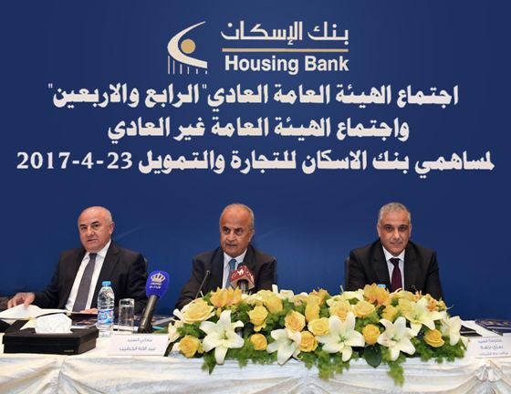 صراحة نيوز – وافقت الهيئة العامة لمساهمي بنك الإسكـان في اجتمـاعها العادي بتاريخ 23/4/2017 على تقرير مجلس الإدارة وصادقت على البيانات المالية لعام 2016 والخطة المستقبلية لعام 2017، وأقرت الهيئة العامة توصية المجلس بتوزيع أرباح على المساهمين بنسبة 30% من القيمة الاسمية للسهم, كما تم انتخاب مجلس ادارة للدورة القادمة ضم السادة :-