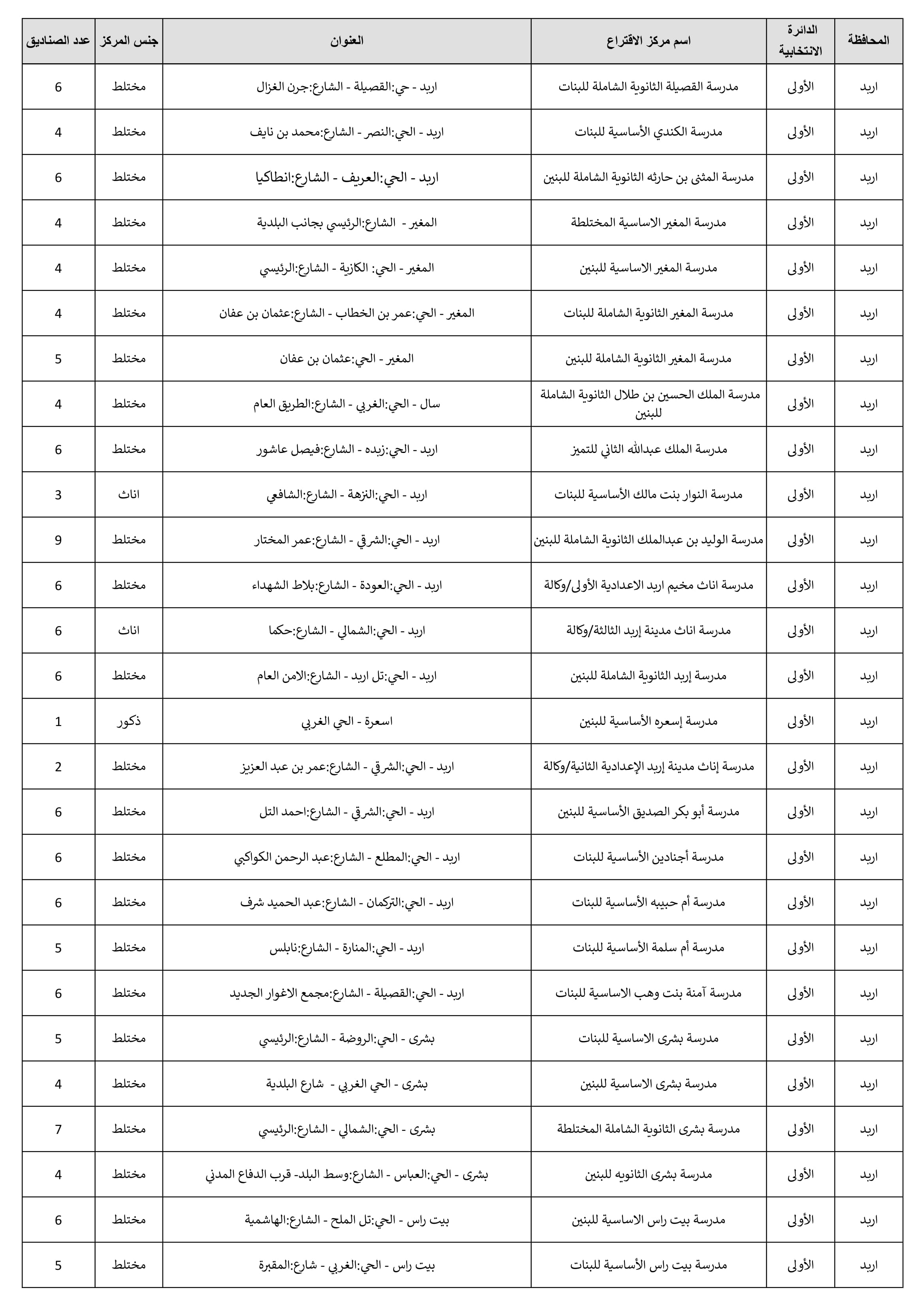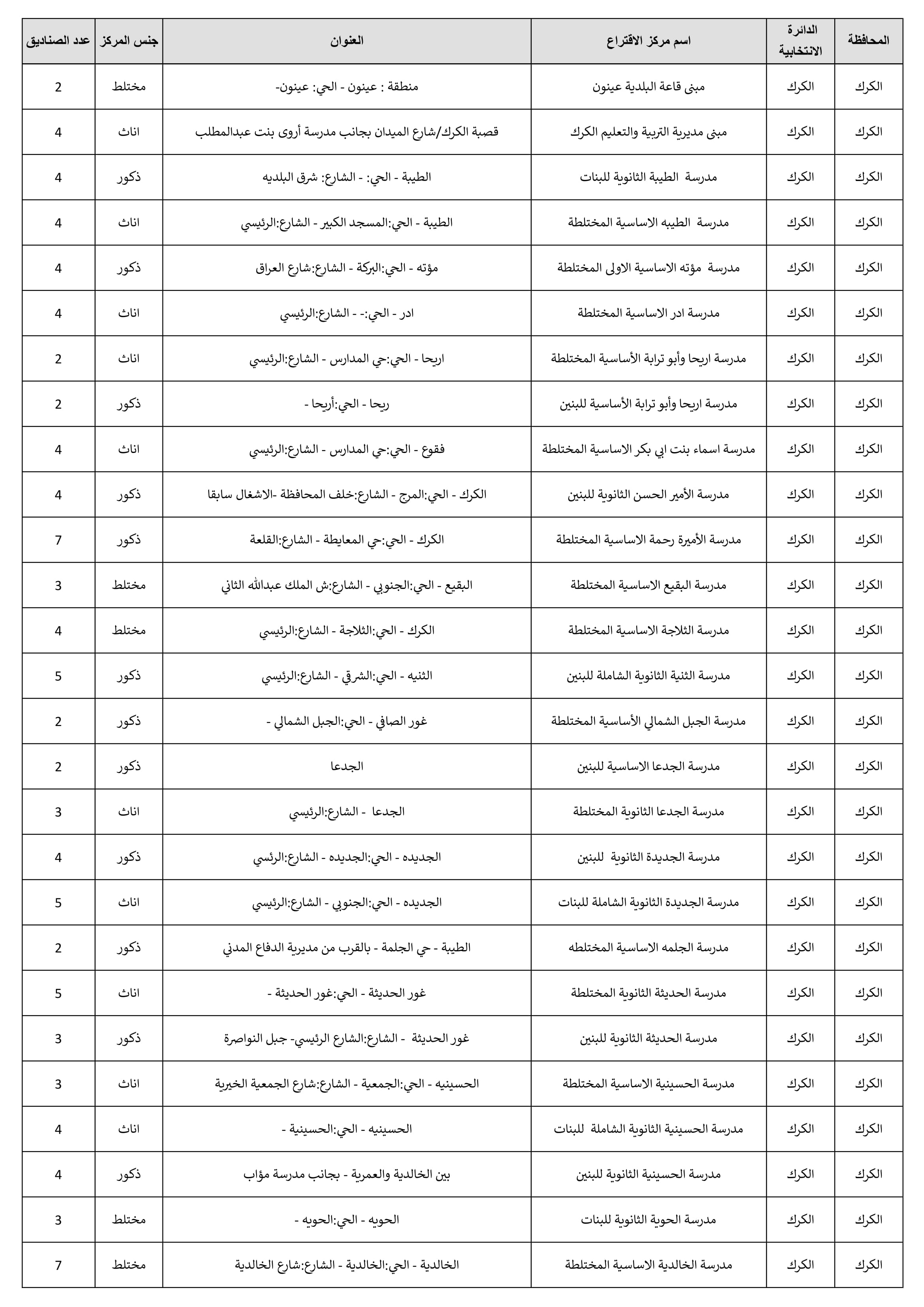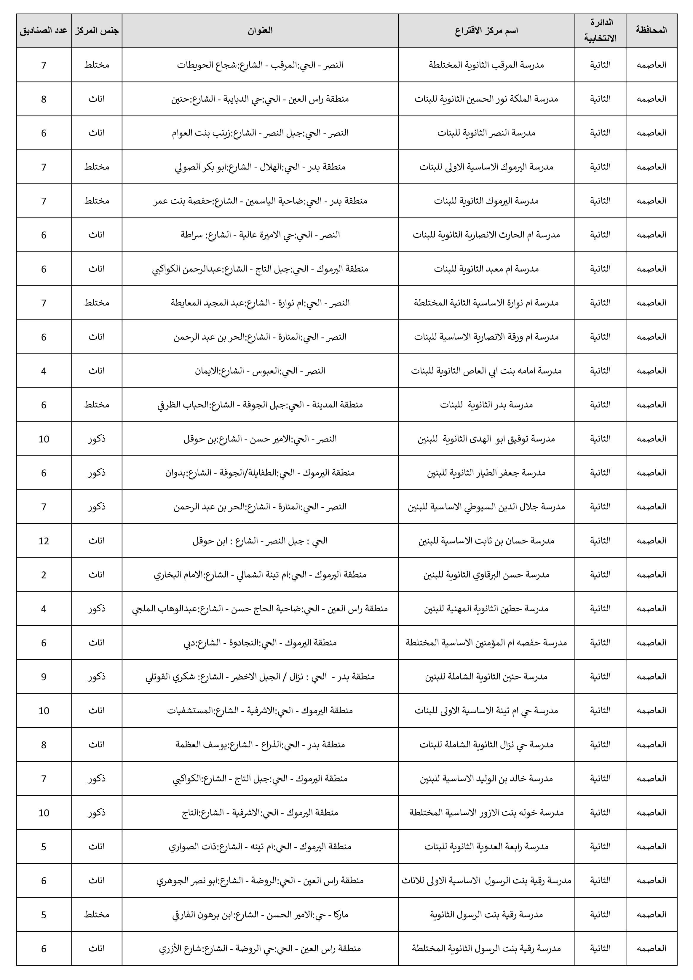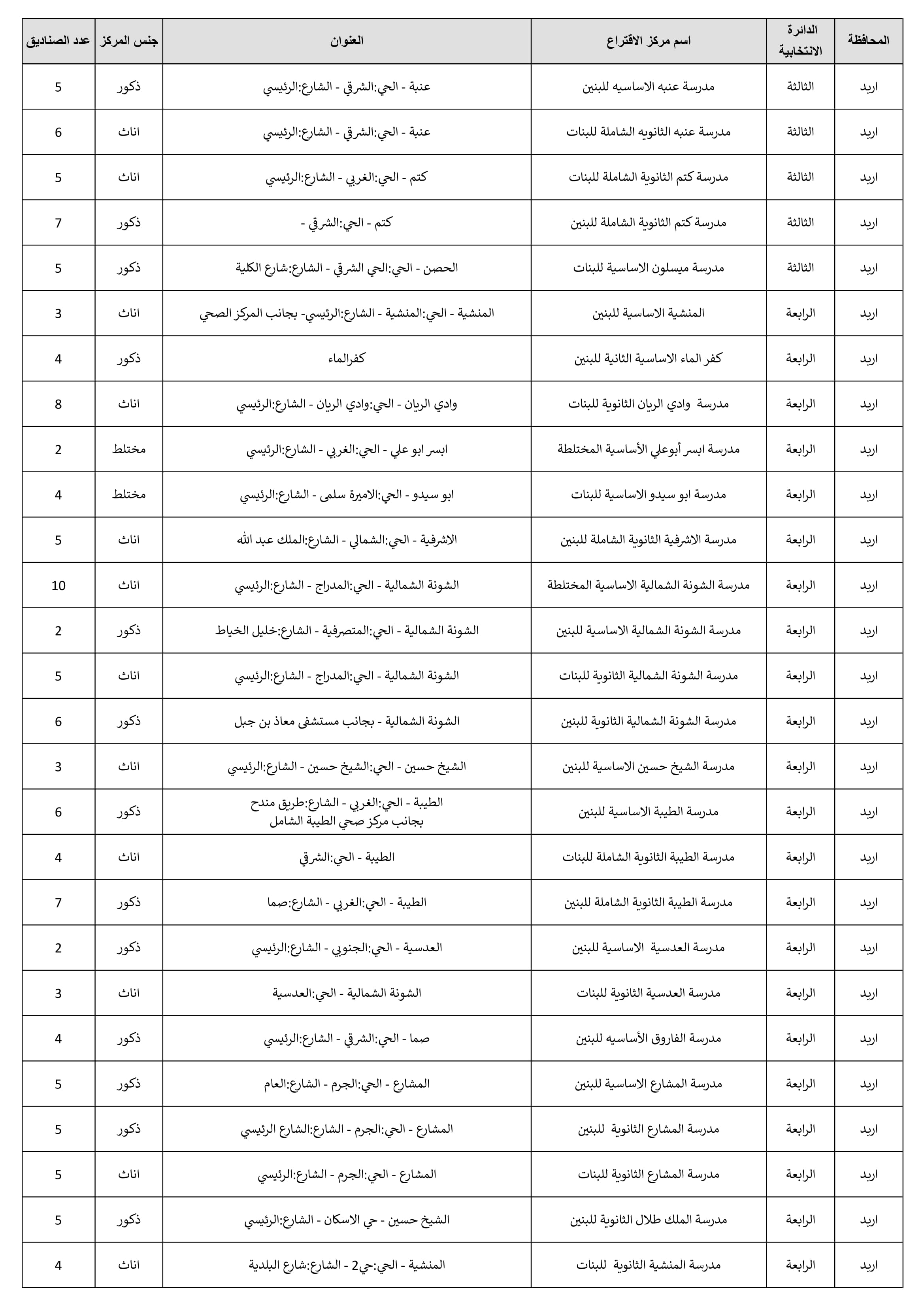واستنادا الى أحكام الفقرة (أ) من المادة (26) من قانون الانتخاب لمجلس النواب رقم (6) لسنة 2016 وتعديله، فإنه يتوجب على الهيئة أن “تصدر قبل موعد الاقتراع بسبعة أيام على الأقل قرارا تحدد فيه مراكز الاقتراع والفرز في كل دائرة انتخابية مع بيان عدد صناديق الاقتراع والفرز في كل مركز على أن ينشر القرار على الموقع الالكتروني للهيئة وفي صحيفتين محليتين يوميتين وفي أي مكان تراه الهيئة مناسبا”.