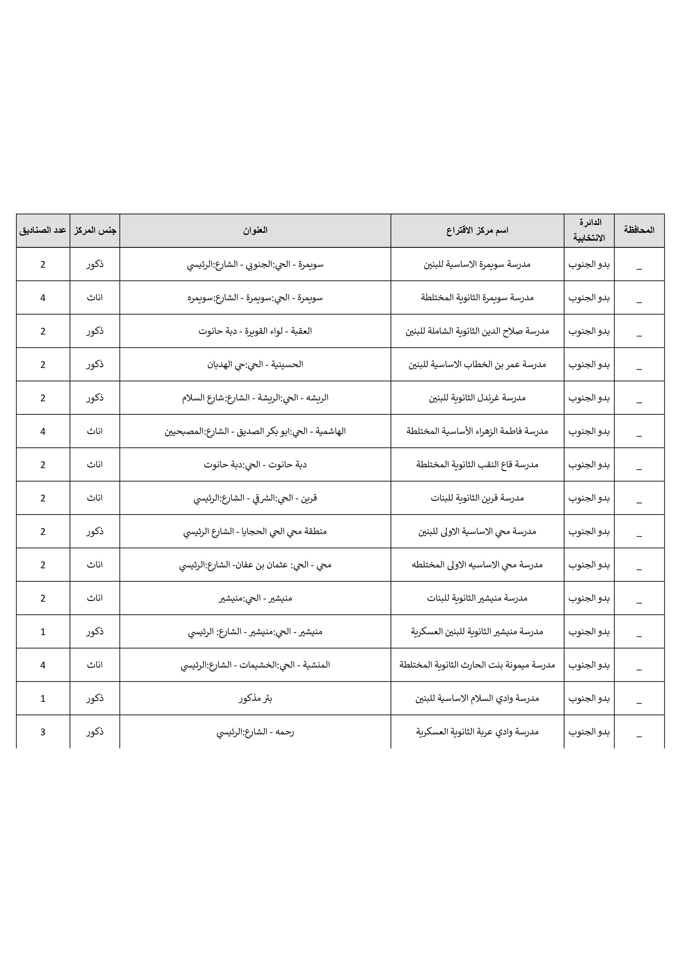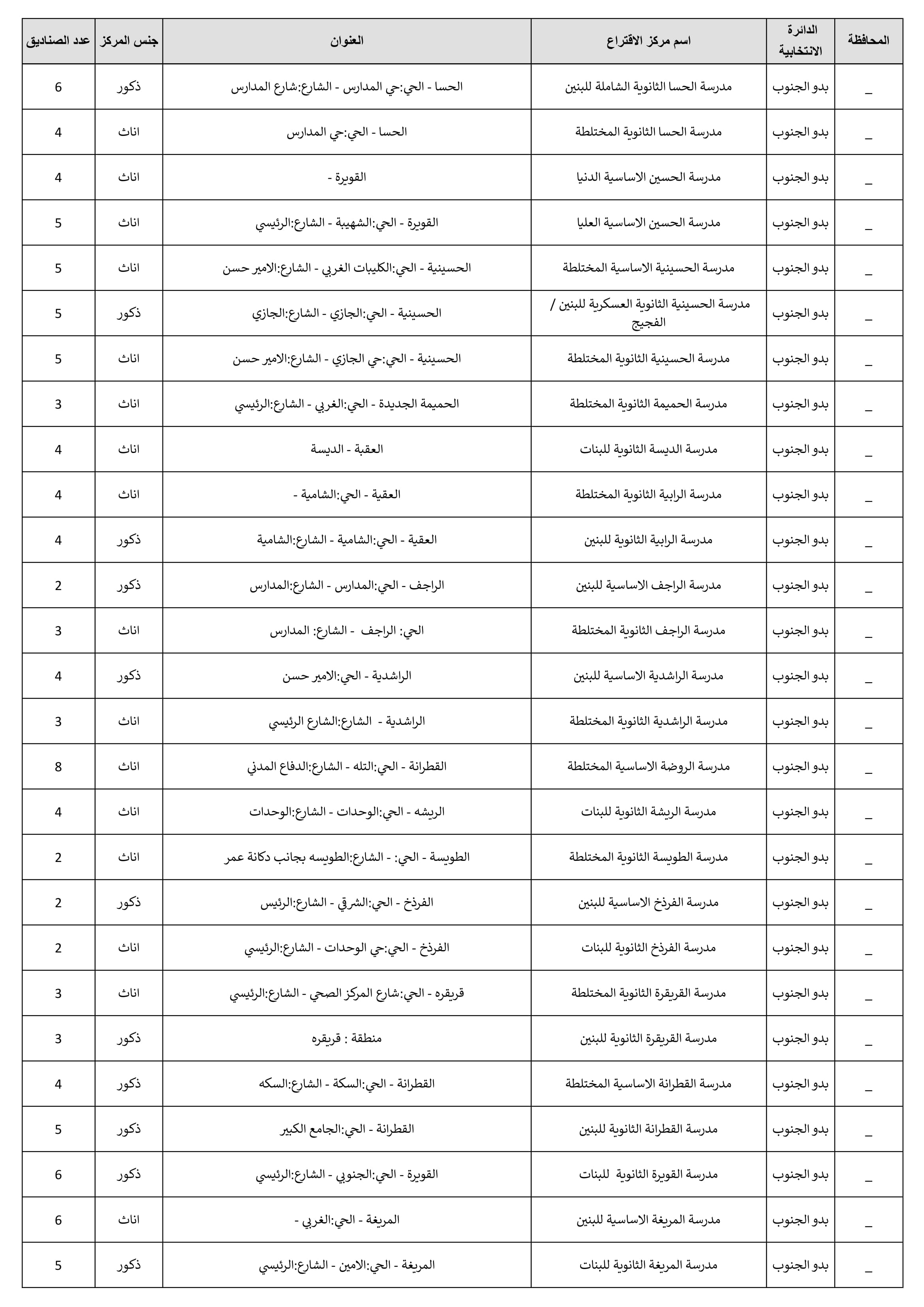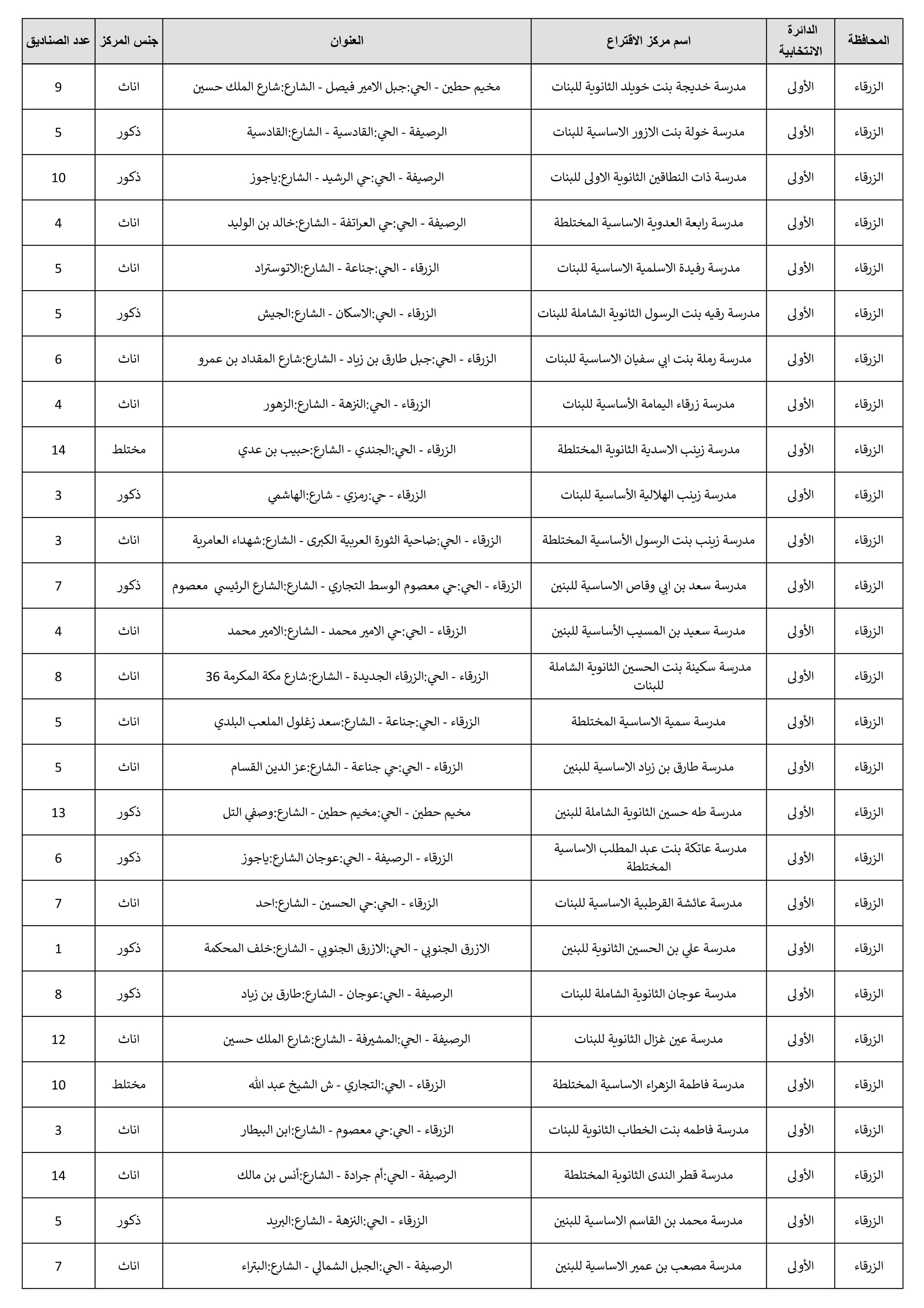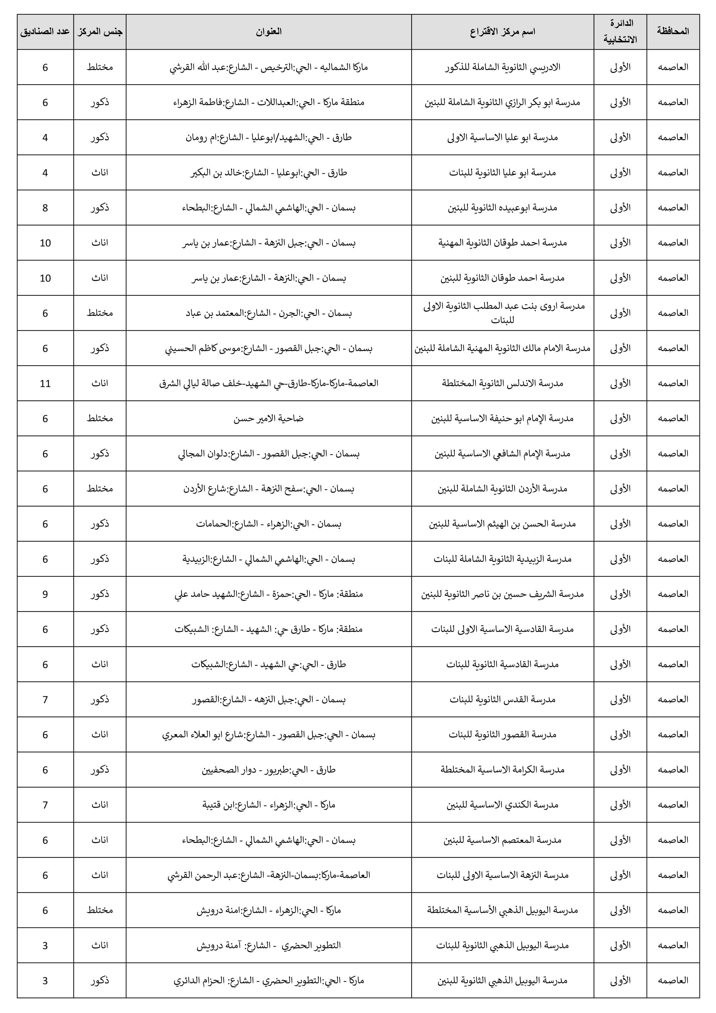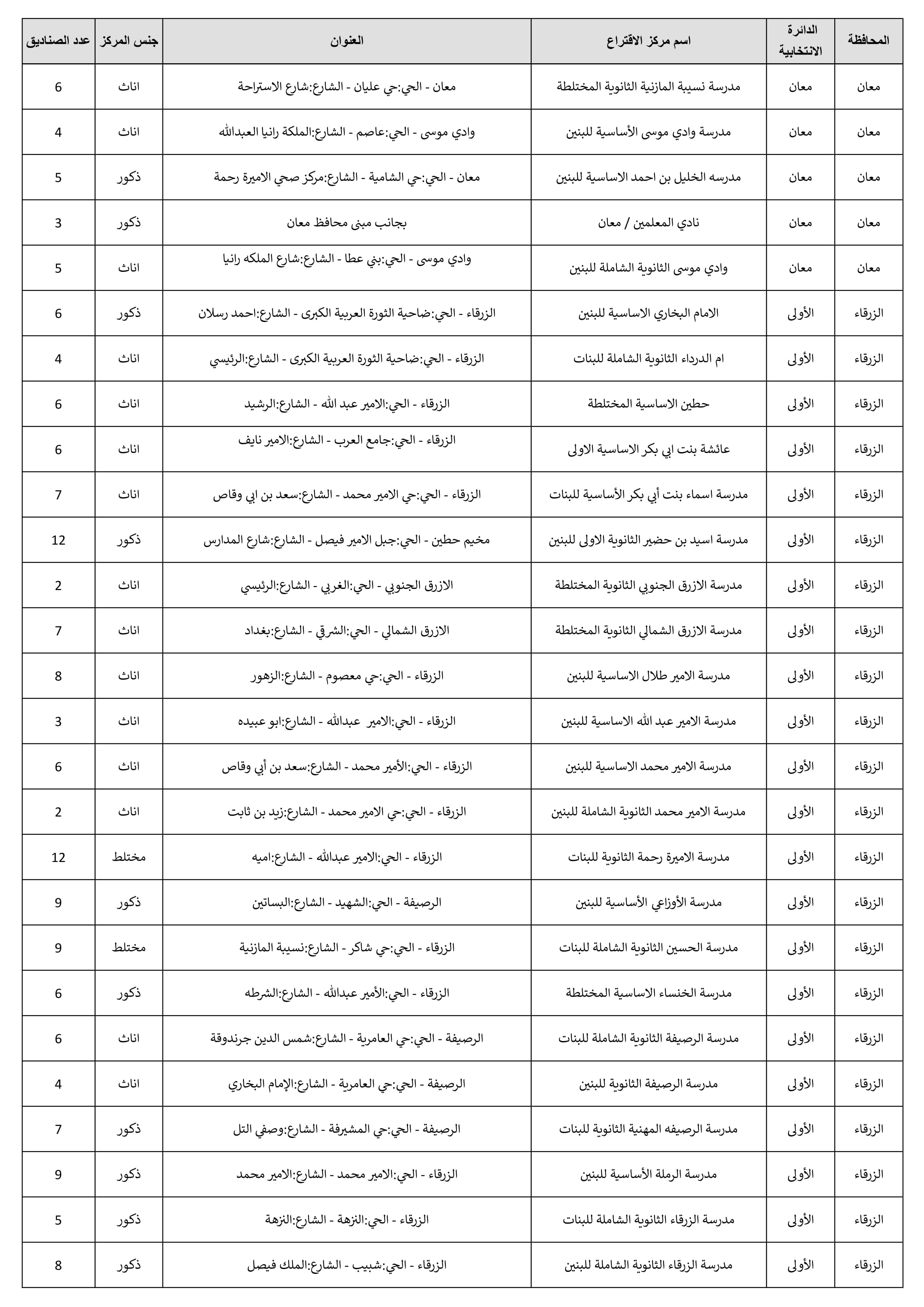 صراحة نيوز – نشرت الهيئة المستقلة للانتخاب مراكز الاقتراع والفرز في (23) دائرة انتخابية بالاضافة الى بيان عدد صناديق الاقتراع والفرز في كل مركز.