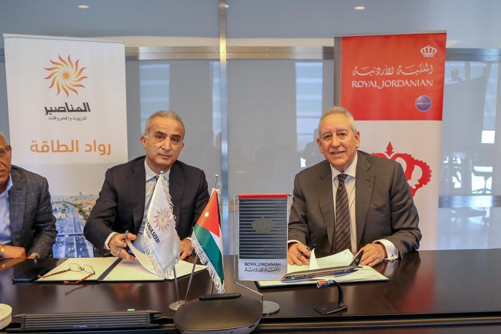 وقع مذكرة التفاهم نائب رئيس مجلس الإدارة / الرئيس التنفيذي للملكية الأردنية المهندس سامر المجالي ونائب رئيس هيئة المديرين للشركة الأردنية الحديثة لخدمات الزيوت والمحروقات السيد معين قداده بحضور عدد من المعنيين من كلا الطرفين.