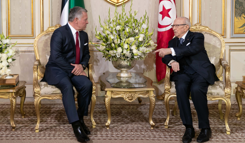 مباحثات جلالة الملك والرئيس التونسي تناولت أيضا عددا من الأزمات التي تمر بها المنطقة، إضافة إلى جهود الحرب على الإرهاب ضمن استراتيجية شمولية.