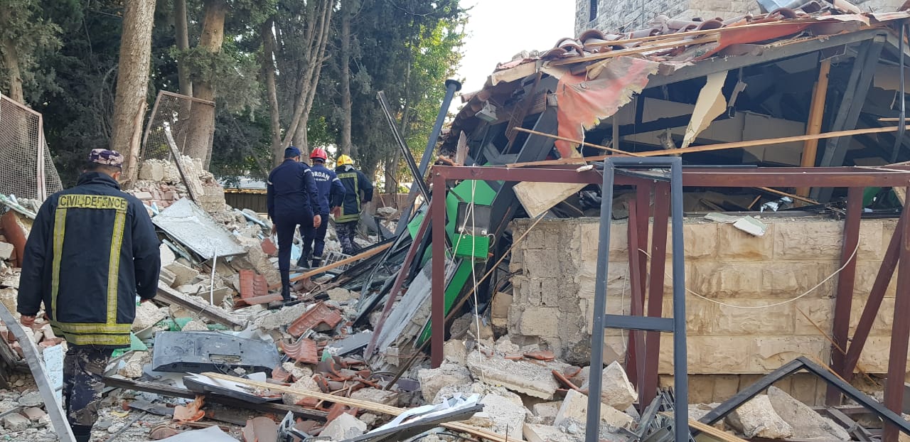وأدى التسرب إلى حدوث عملية عصف وتفريغ لحظي، وانهيار المطعم بالكامل وحدوث بعض الأضرار في المباني و المحال المجاورة ونتج عن الحادث إصابة رجل امن بجروح و رضوض بسيطة، حيث قامت بتقديم الإسعافات الأولية اللازمة للمصاب ونقله إلى مستشفى مدينة الحسين الطبية.