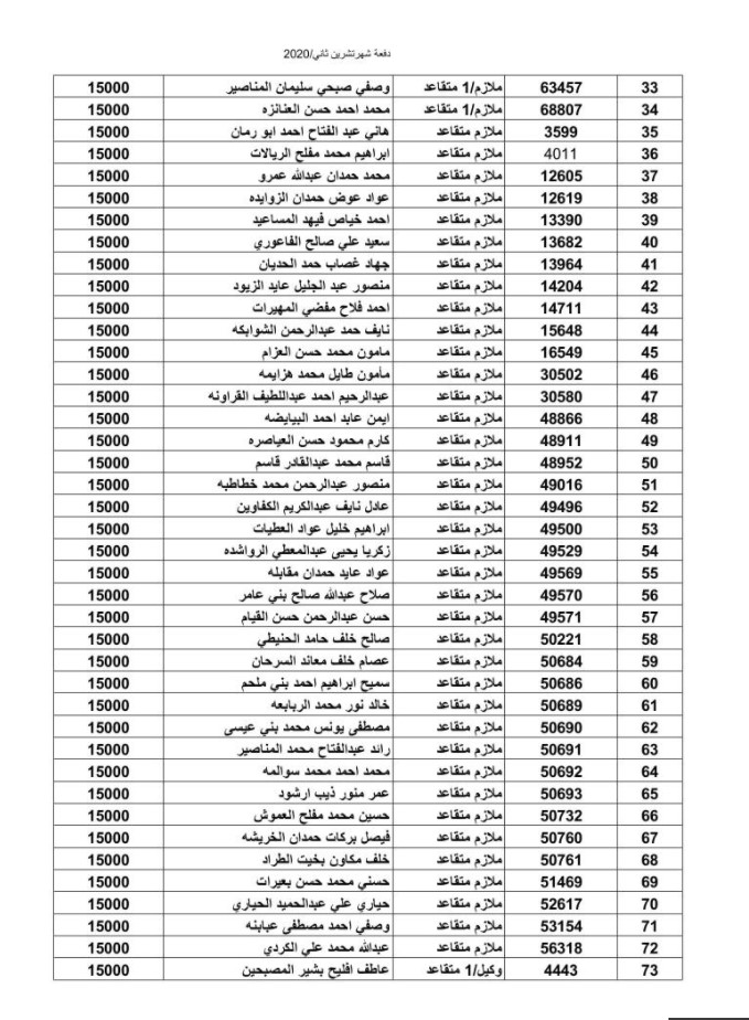 صراحة نيوز – أعلنت القيادة العامة للقوات المسلحة الأردنية – الجيش العربي مديرية مؤسسة الإسكان والأشغال العسكرية بان الضباط وضباط الصف والأفراد المبينة أسماءهم أدناه قد دنت اقدميتهم للحصول على قرض من صناديق الإسكان العسكري.