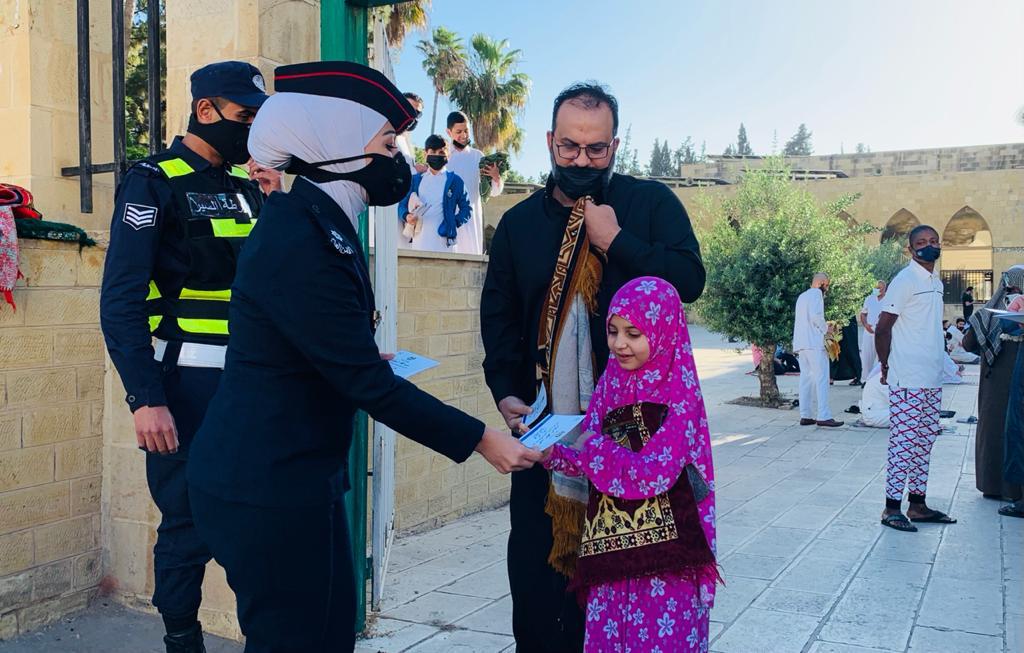ونفذت مديرية الأمن العام خطة أمنية مجتمعية ومرورية في محيط المساجد والمصليات، وشارك منتسبوا الأمن المصلين أداء صلاة العيد، وعملوا على تسهيل وصولهم، وتوزيع أدوات السلامة العامة عليهم، وتشجيعهم على استمرار الالتزام بالإجراءات الوقائية.