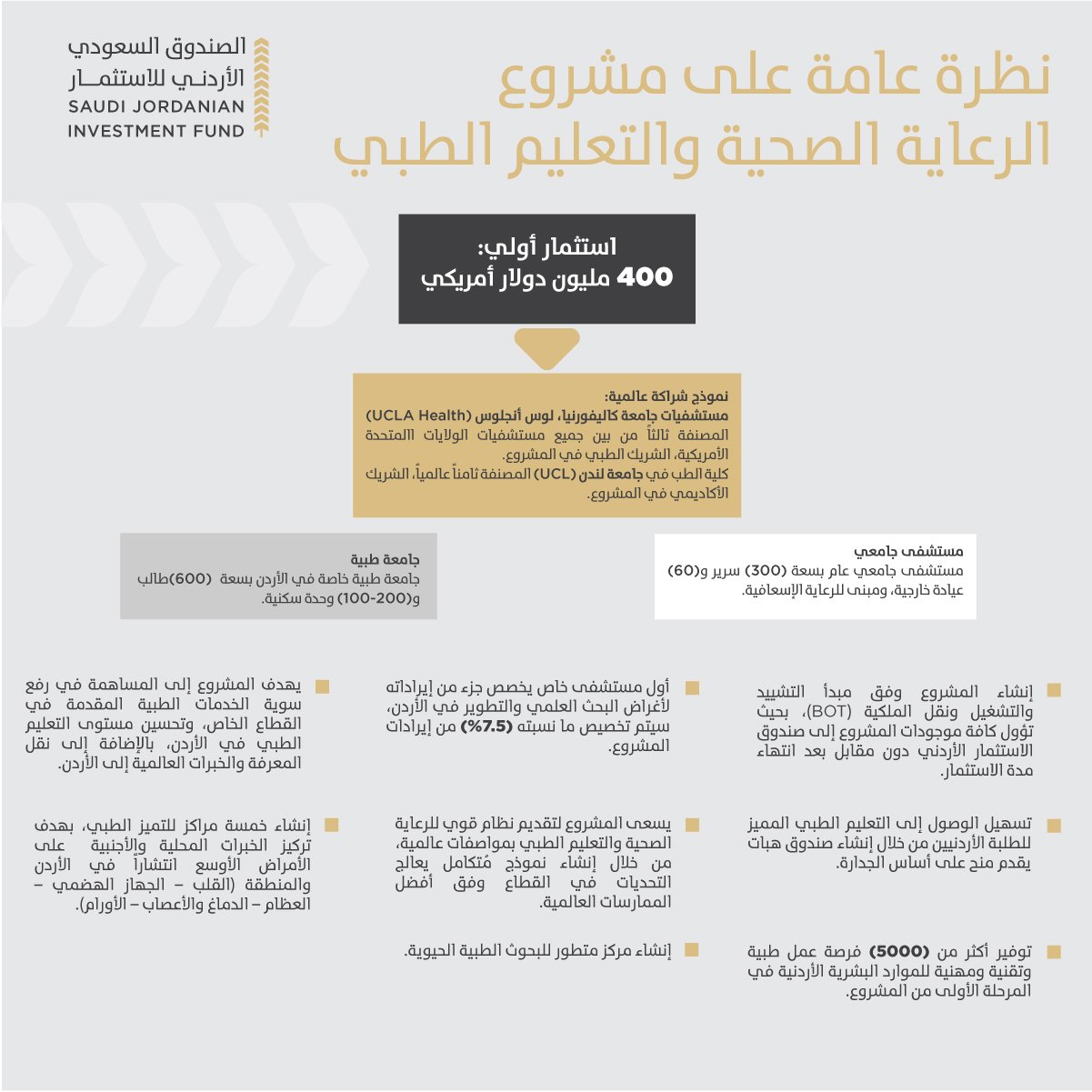وجاء توقيع الاتفاقية بحضور رئيس الوزراء الدكتور بشر الخصاونة، لتنفيذ مشروع استثماري (المستشفى التعليمي).