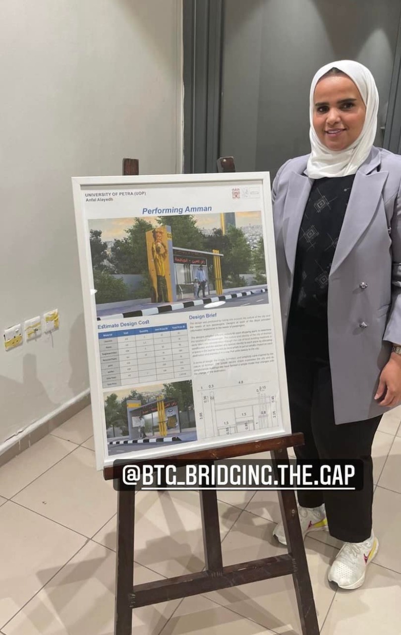 صراحة نيوز – حصل قسم هندسة العمارة في جامعة البترا على المركز الأول على مستوى الجامعات الأردنية المشاركة (وعددها ٥ جامعات) في مسابقة فولبرايت لتصميم موقف حافلات الباص سريع التردد، من خلال فوز مشروع الطالبة أنفال العايض بإشراف الدكتور عمرو ياغي، حيث سيتم تنفيذ المشروع الفائز على أرض الواقع خلال الأيام القادمة.