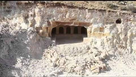 وأما الصورة التي كانت مرفقة فهي لمغارة أثرية تقع بمنطقة حمامات عفرا المعدنية وبعيدة أكثر من 8 كم عن منطقة اللعبان حيث هبط الطئرة والمغارة معروفة لمن زار موقع الحمامات