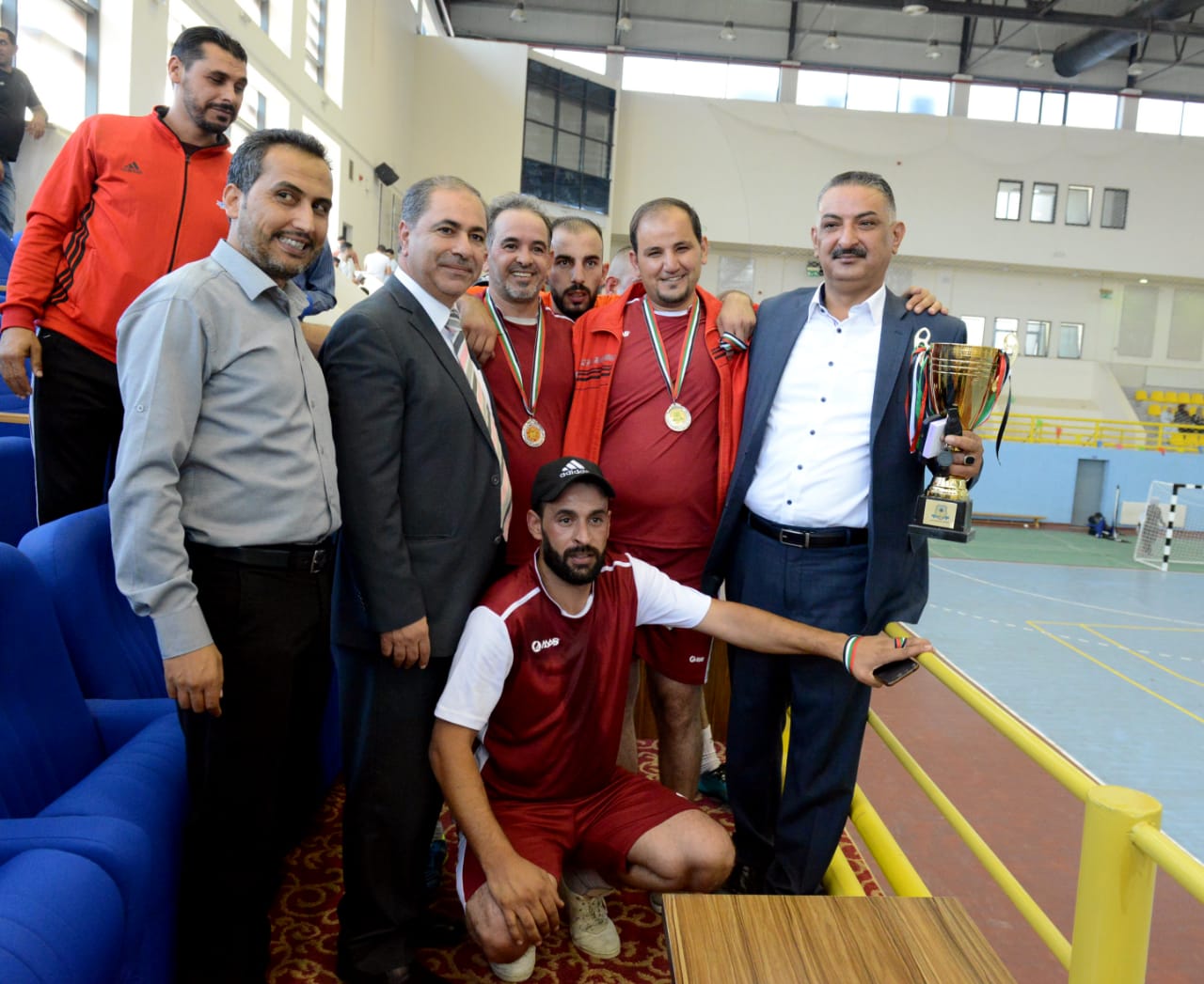 وفي ختام المباراة قام الدكتور المعايطة، بتسليم الكأس والمداليات للفريق الفائز بحضور حشد من أعضاء الهيئتين التدريسية والإدارية وطلبة الجامعة.