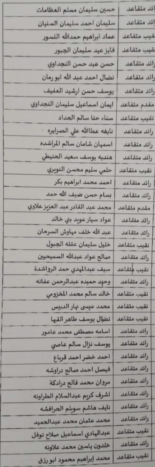 وشملت الدفعة 100 ضابط متقاعد من رتبة رائد ونقيب.