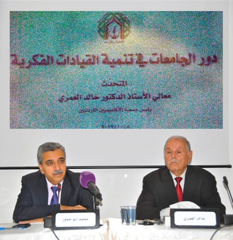 عمّان- صراحة نيوز – بدعوة من منتدى الفكر العربي، ألقى أ.د. خالد العمري رئيس جمعية الأكاديميين الأردنيين وزير التربية والتعليم والتعليم العالي الأسبق محاضرة مساء اليوم الأحد تناول فيها دور الجامعات في تنمية القيادات الفكرية .