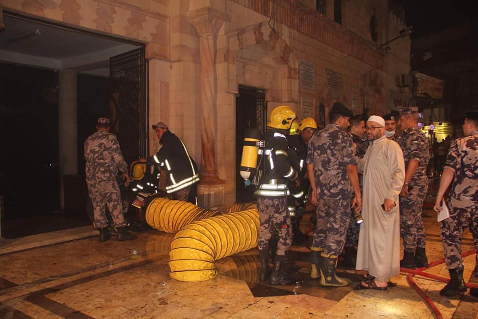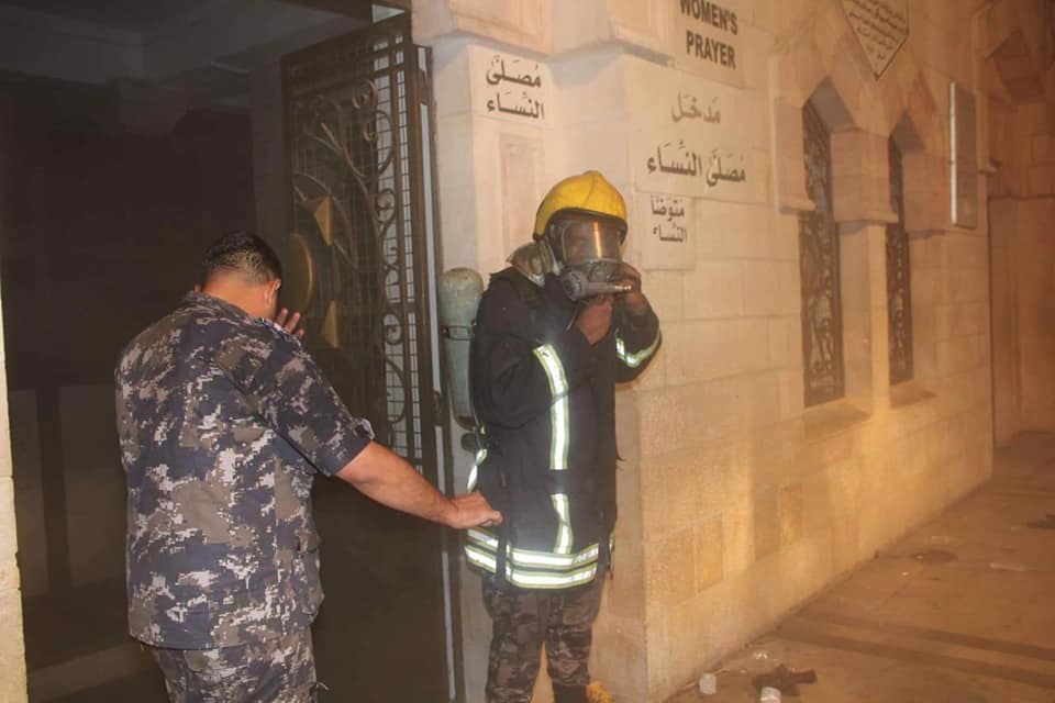 ولاحقا ذكرت إدارة الإعلام في الدفاع المدني أن كوادر الإطفاء في مديرية دفاع مدني شرق عمان أخمدت حريقاً محدوداً في المسجد الحسيني الطابق الثاني تقدر مساحته ب50م2 والذي يحتوي على مكتبة حيث لم ينتج عنه إي إصابات بالأرواح .