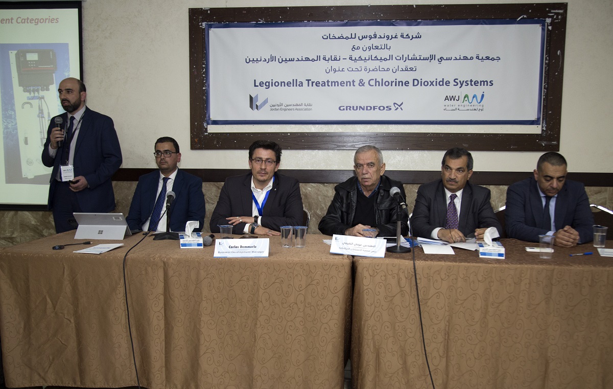 صراحة نيوز – عقدت جمعية مهندسي الاستشارات الميكانيكية التابعة لشعبة الهندسة الميكانيكية في نقابة المهندسين الأردنيين وبالتعاون مع المكتب الاقليمي لشركة جراندفوس محاضرة متخصصة بعنوان “معالجة بكتيريا المياه لوجينيلا باستخدام نظام داي اوكسيد الكلور” Legionella Treatment &Chlorine Dioxide” System“، بحضور رئيس الجمعية المهندس عوني التميمي، وعدد من اعضاء الجمعية، ونائب رئيس مجلس شعبة الهندسة الميكانيكية المهندس أحمد زهران، وبمشاركة 58 مهندسا ومهندسة.