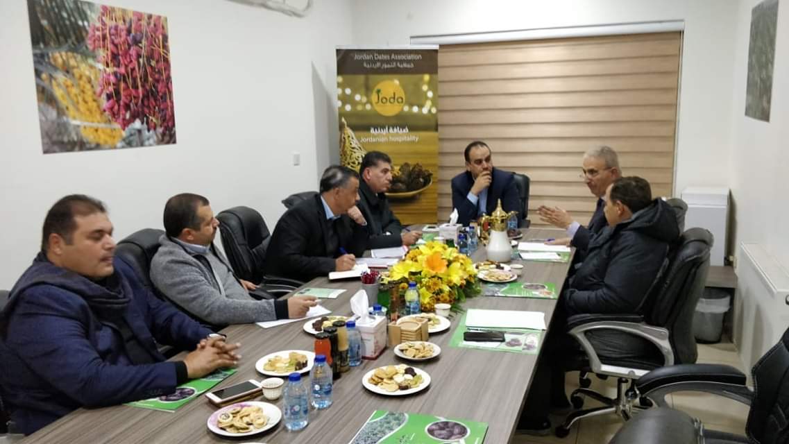 وتم مناقشة تصدير و استيراد التمور الاردنية و التمور بانواعها كما تم مناقشة ضريبة المبيعات المفروضة على التمو ر الاردنية وكذلك اقامة معرض دائم للتمور و اتخذ معالي الوزير قرارات غاية في الاهمية تتعلق بهذا القطاع الهام ، حيث تقرر افتتاح وحدة ادارية خاصة بالنخيل في وزارة الزراعة و كذلك تسمية ضباط ارتباط في مناطق انتاج التمور في وادي الاردن و الازرق .